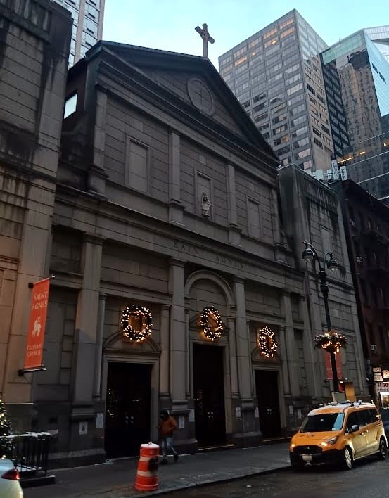 The Church of St. Agnes can be accessed by taking the 4, 5, 6, 7 or S trains to Grand Central Station, via Metro-North to Grand Central Terminal, or LIRR to Grand Central Madison. Alternatively, the M101, M102, or M103 can be taken to E. 45th Street.