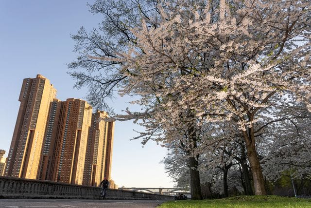 For fewer crowds, go uptown: the NYRP also planted cherry blossoms along the Harlem River Greenway in Inwood in 2007, which now features more than 80 flowering trees along the waterfront.