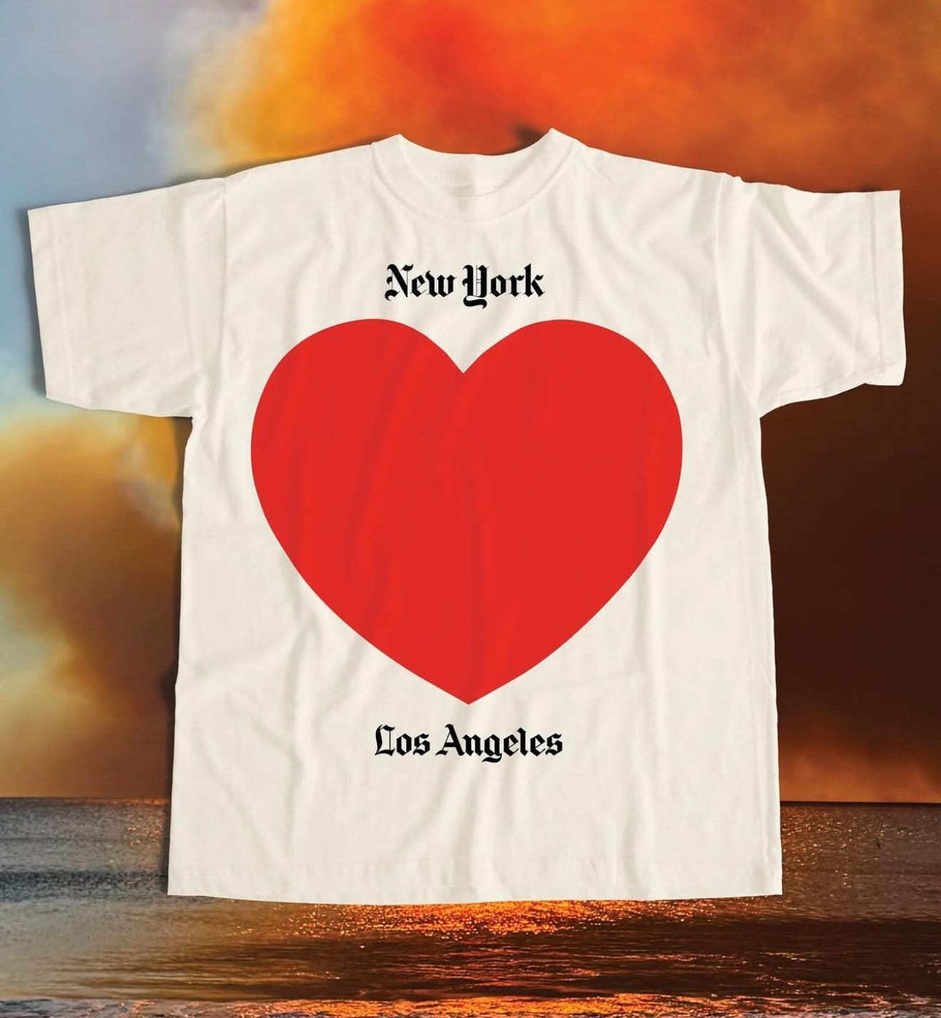 Greenpoint’s Kingsland Editions has made this shirt to benefit wildfire victims, uniting the bicoastal cities with the fonts of our famous local newspapers. The designer says that all funds go directly to Mutual Aid LA.