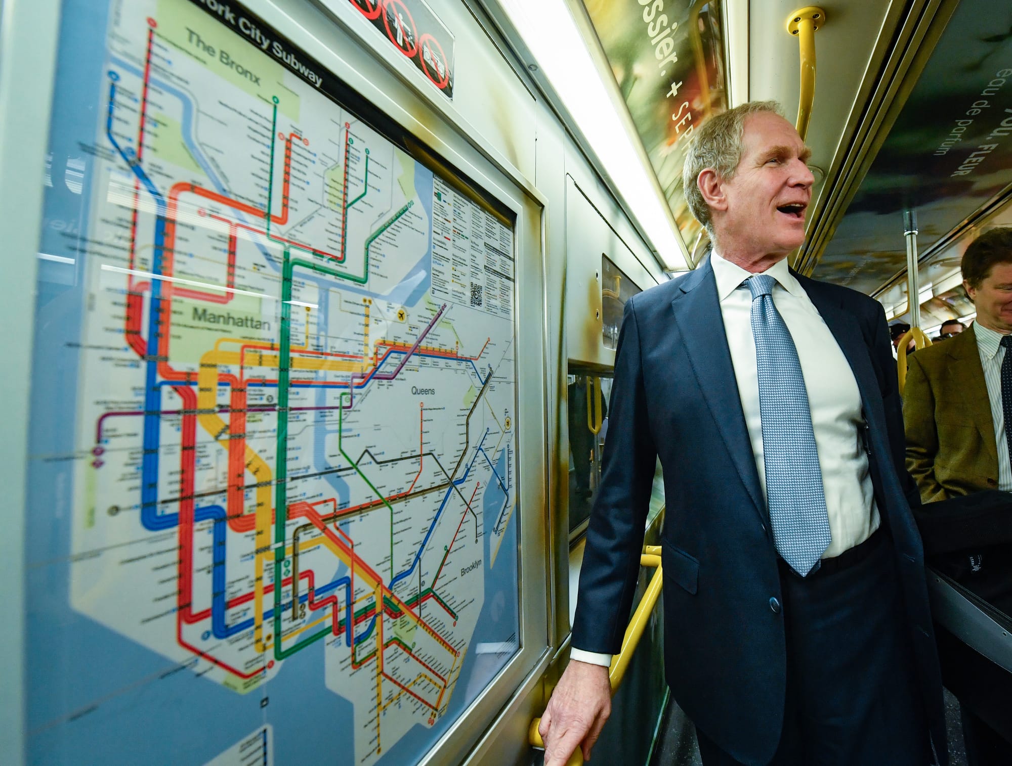MTA Chair Janno Lieber shows off the chic new maps in the wild. (Photos via Flickr/MTAphotos)