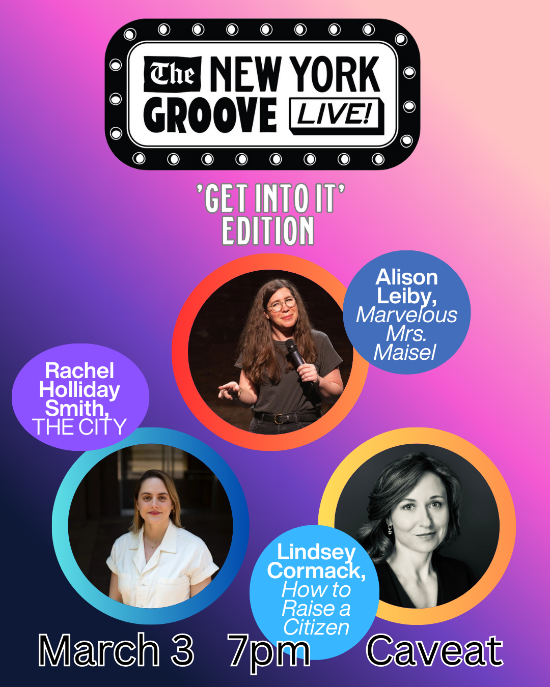 First, a reminder: The New York Groove Live! is exactly one week away. It's New York City's only live comedy-ish show hosted by news reporters. The theme this time is "Get Into It," and we'll be highlighting some regular folks who are doing great things to improve life in the city. Plus, we'll have a custom crossword. You have until 7pm today to get an early bird ticket. But if you're a member, keep reading: we have a $10 ticket code just for you below.