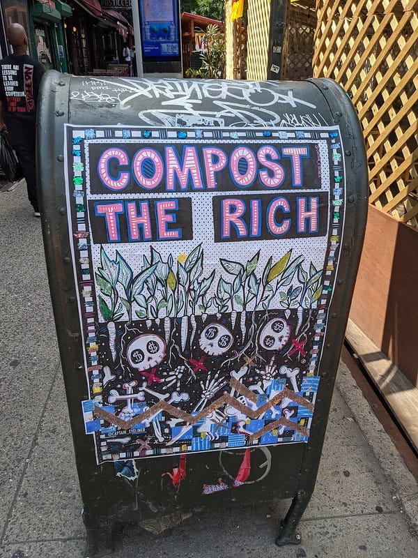 New Yorkers are understandably frustrated at the turn in the composting program; the city has a history of environmental mandates that seem like good ideas in practice, but lack the muscular enforcement and education that would infuse them into the city’s DNA (like the city’s plastic bag “ban”). Mayor Adams is accused of committing many bribery and corruption crimes, and is now in the pocket of a president who certainly doesn’t give a shit about composting. But before all that, he was on track to be known as the mayor who finally actually did something about the city’s addiction to giant piles of stinky black trash bags on every street. Businesses and residential buildings now have to containerize their trash, a huge leap into the 19th century that the city struggled for decades to wrap its head around.