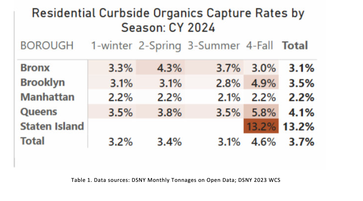 But that seems to not be the case: Only 4.6 percent of all organic waste in the city was separated and collected in the fall, when collection was available city wide, according to a study by a Baruch College professor that Gothamist reported on this month. Staten Island, contrary to everyone’s hack jokes about it, was ahead of everyone with 13.2 percent of food waste being saved from a landfill; Queens was in second place with a still-paltry 5.8 percent.